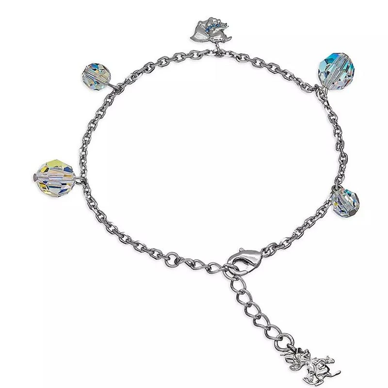 Rediscover a timeless gem from the Disney vault with this collection of Dumbo jewelry inspired by Walt Disney’s animated classic. This silvery link chain bracelet features a Dumbo charm set with Swarovski crystals plus four prismatic faceted beads to make hearts soar.