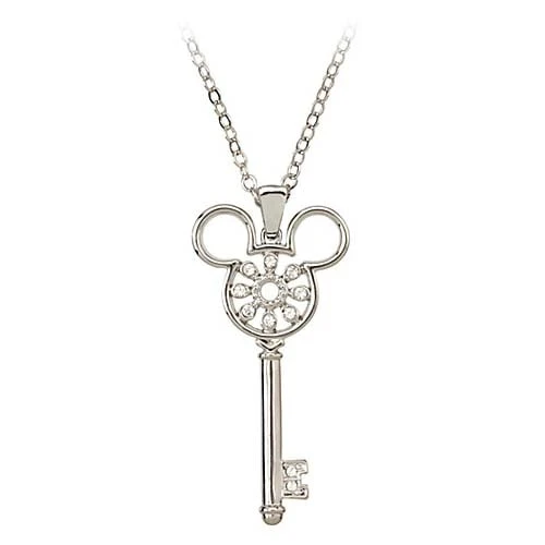 Unlock a secret garden of romance and glamour with this sparkling Crystal Key Mickey Mouse Necklace by world renowned Arribas Brothers. Elegant silvertone key pendant features the famed mouse icon with a fabulous floral setting of Swarovski crystals.