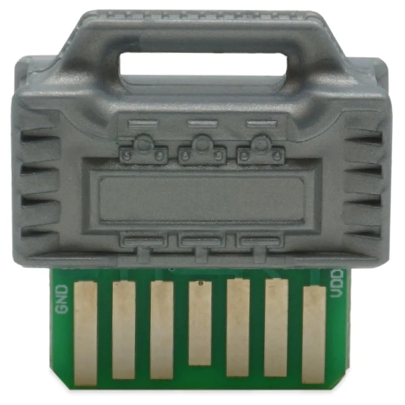 Unlock the unique sounds and behavior of a droid with a Smuggler affiliation when you plug this silver chip into your R Series or BB Series Customizable Astromech from the Droid Depot.
