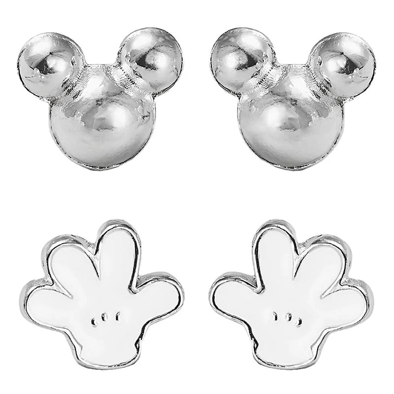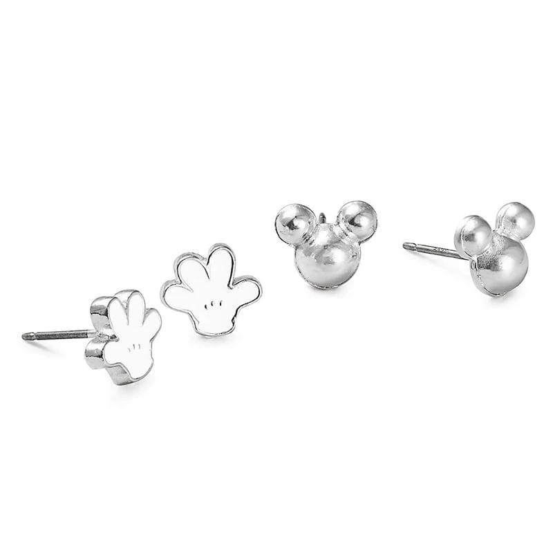 Mix and match the best of Mickey with this set of two different pairs of earrings by Alex and Ani. One pair features dimensional silvertone Mickey icons while the second pair is Mickey’s signature gloves with white enamel.