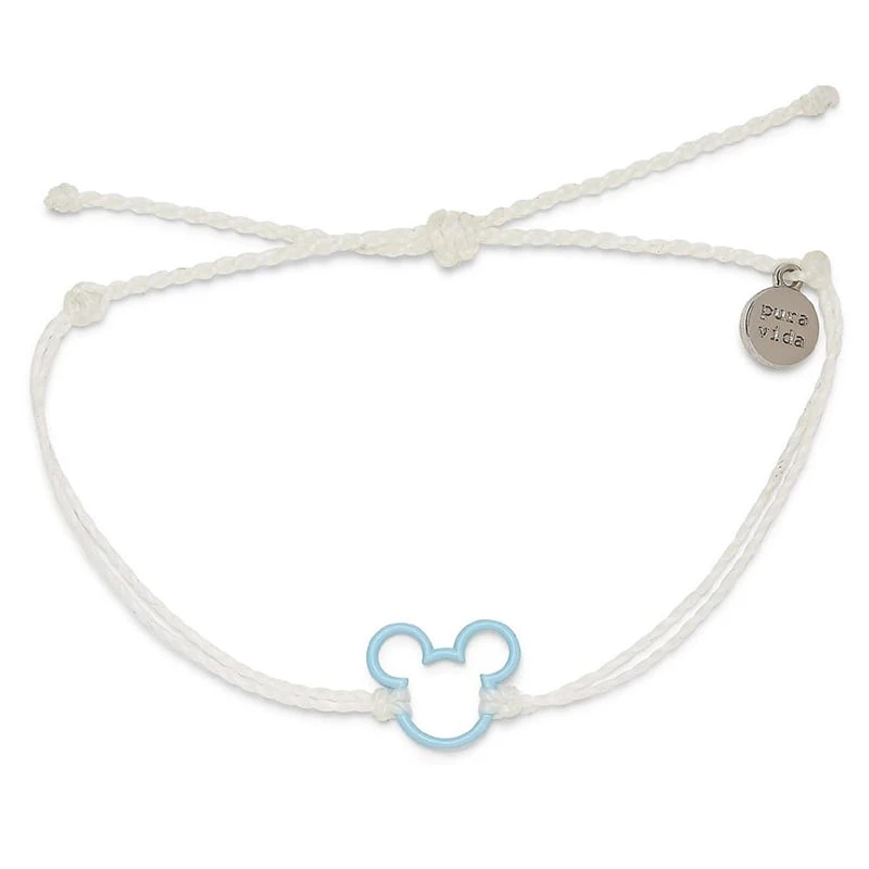 Mickey will always be close at hand to provide a smile with this handcrafted bracelet by Pura Vida. The brass Mickey icon charm features rhodium plating that’s complemented by the fully adjustable waxed aqua cord.