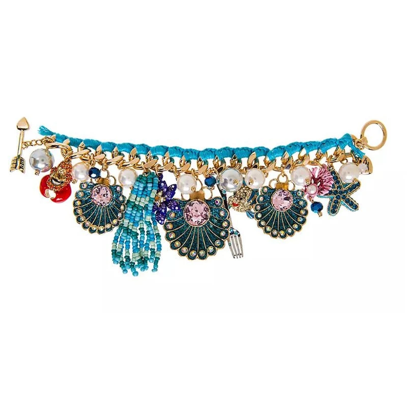 How many treasures can one bracelet hold? Betsey Johnson’s charming accessory is packed with deep-sea chic featuring pearls, stones, beads and more for a gem-encrusted accessory that is worth shell-ebrating.