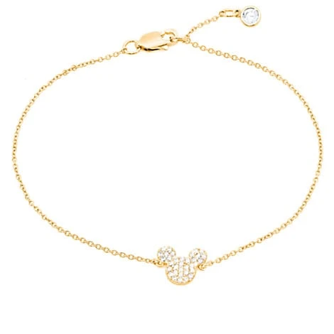 You can take Mickey’s sparkle wherever you go with this Mickey Mouse Icon Bracelet by Crislu. Adorned with handset flawless cubic zirconia, this stylish jewelry is crafted from sterling silver and finished in 18 karat gold.