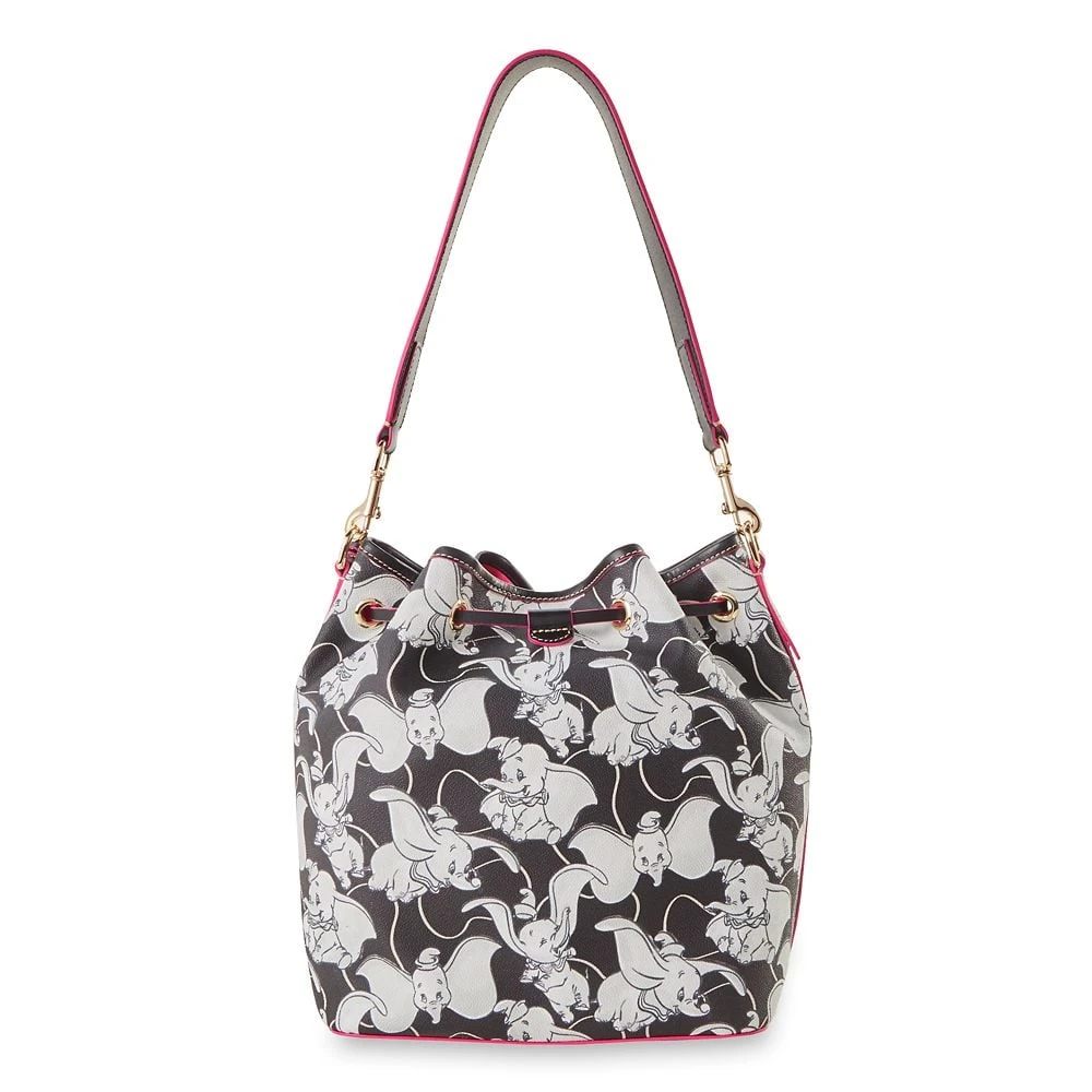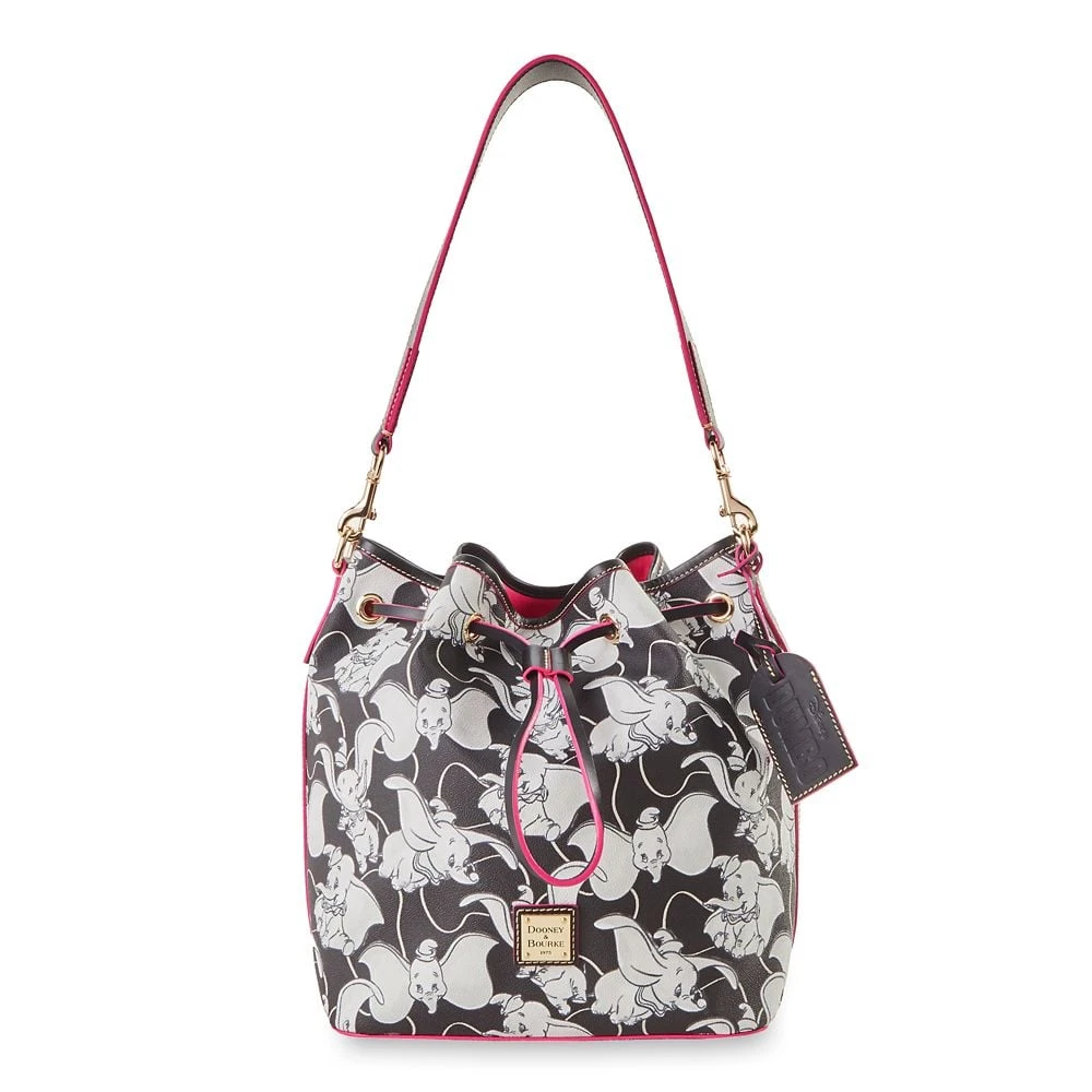 Your spirits will soar when carrying this Dumbo drawstring bag from Dooney & Bourke. The simulated leather bag has an allover black and white print featuring adorable artwork of the flying elephant in a variety of joyful poses inspired by Disney’s 1941 animated classic.