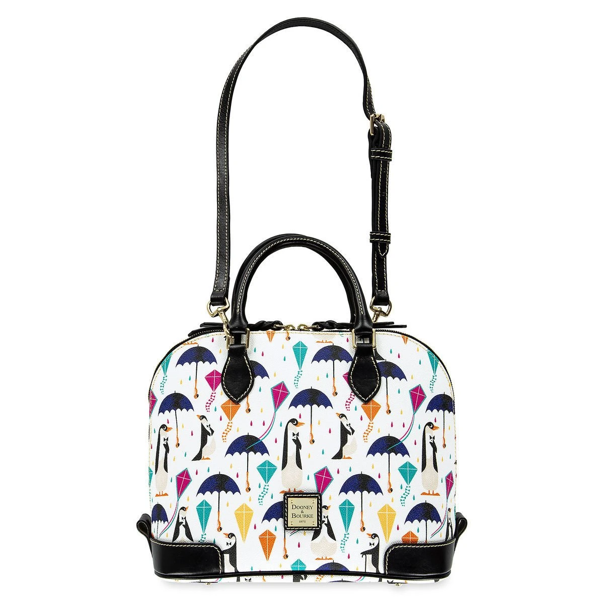 Show your whimsical, magical side with this charming satchel by Dooney & Bourke. Inspired by Disney’s live action Mary Poppins Returns, it features an allover pattern of penguins and umbrellas.