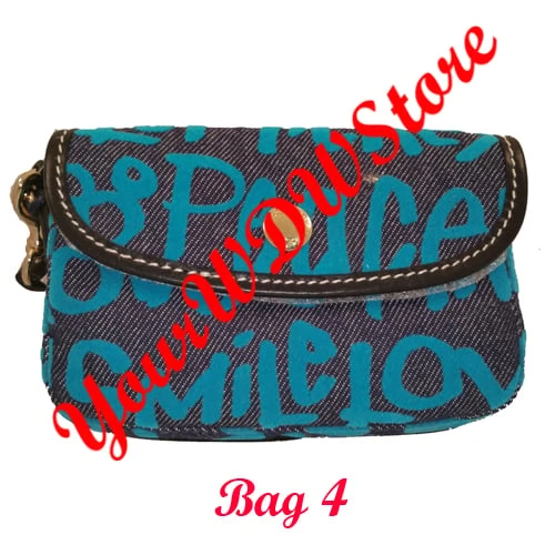 ”Peace, love, laughs, Mickey, Minnie.” This denim with leather and suede trim Dooney & Bourke Bag combines their trademark quality and superior design values with a happy message from the Disney Parks by the fashion label you love.