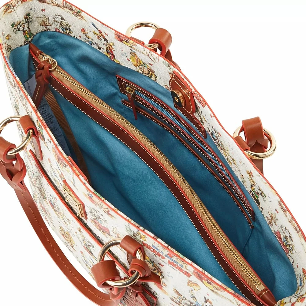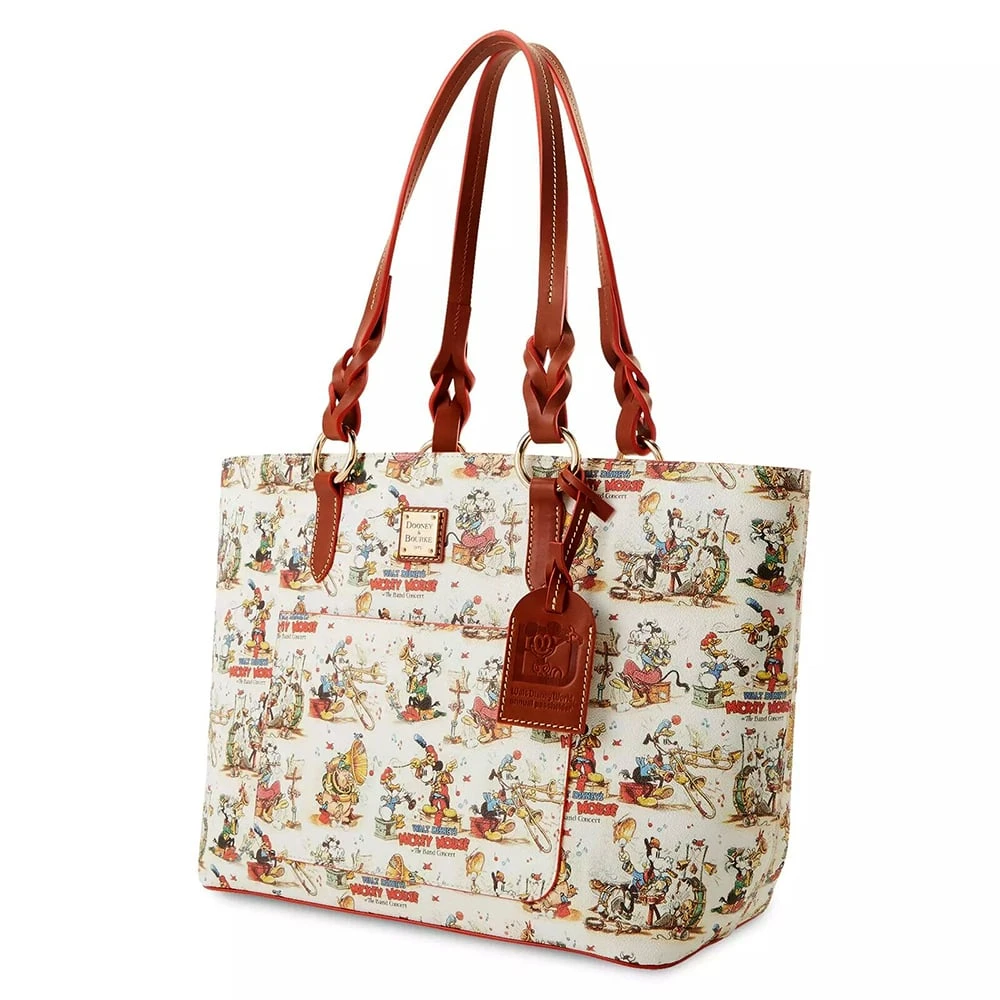 Strike up the band for this Dooney & Bourke tote inspired by Walt Disney’s The Band Concert, the first Mickey Mouse cartoon short in color. The ageless, leather trimmed design provides room for all your essentials while the whimsical pattern conducts a symphony in style. The leather Walt Disney World Annual Passholder tag shows off your special status.