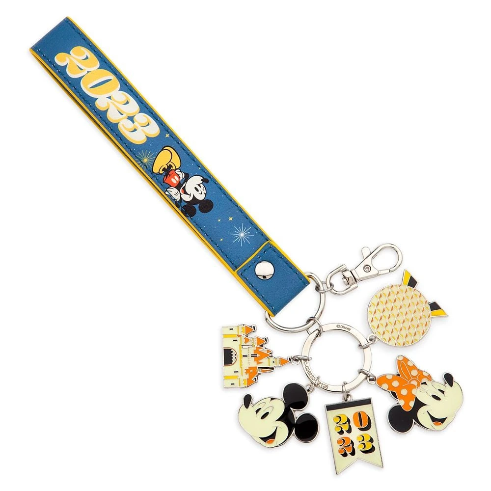 - Metal charms of Mickey, Minnie, Spaceship Earth, Fantasyland Castle and 2023 commemorative flag on split key ring