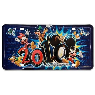 Bring your pals along for the ride with the 2010 Walt Disney World License Plate. Featuring Mickey, Minnie, Pluto, Goofy, Donald, Woody, and Buzz, it makes every ride a blast. The background features favorite pastimes like ”Take in a Parade,” and more.