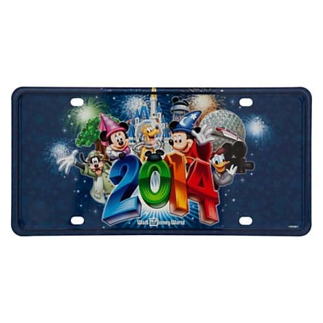 Travel with happy memories of your visit on display with this souvenir 2014 Walt Disney World License Plate. Mickey and the gang greet passers by with a burst of bright, bold graphics including park icons and the 2014 logo design!