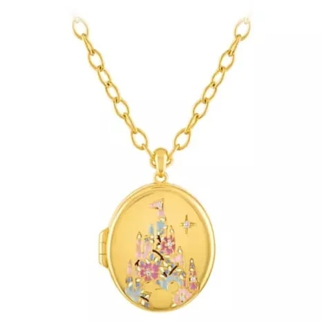 - Hinged locket cover features Fantasyland Castle and Mickey icon