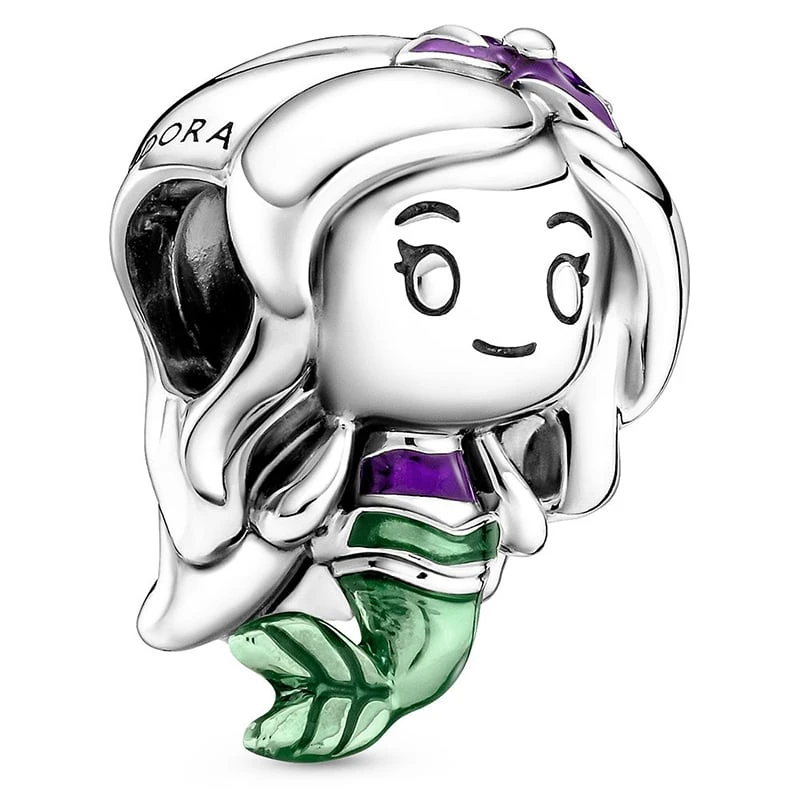 This sculpted Ariel bead by Pandora Jewelry will be a lasting reminder that dreams really can come true. Silver casting with purple and green enamel highlights make it shine.