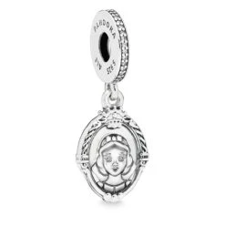 Look into this sterling silver mirror charm to see who is the fairest in the land. The detailed design features the Evil Queen on one side and Snow White on the other. The double-sided charm hangs from a ring circled with sparkling Mickey icons.
