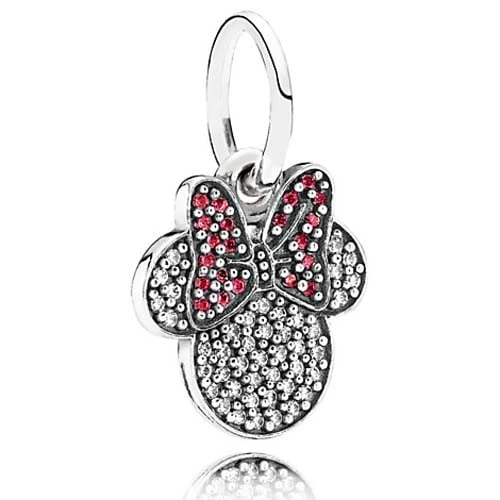 - Disney Minnie dangle in sterling silver with 43 pavé-set clear cubic zirconias and 21 pavé-set red cubic zirconias