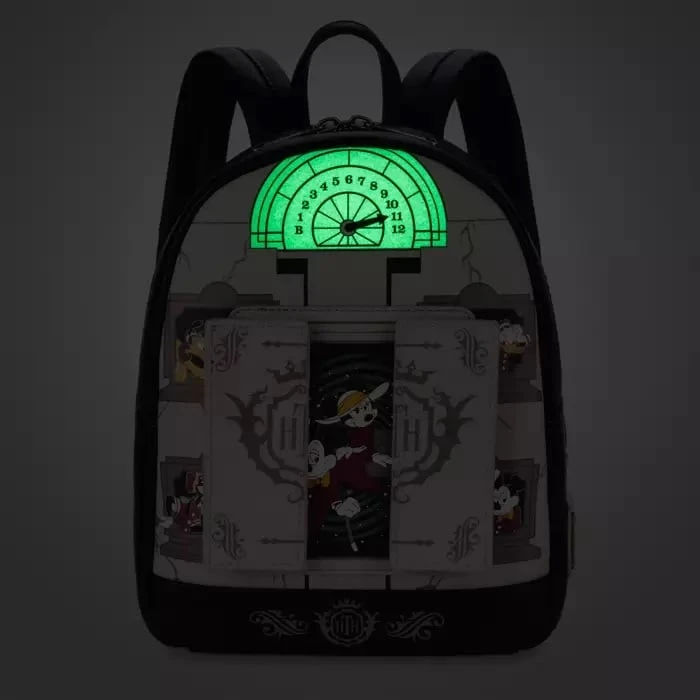 Pack your bag for a stay at the Hollywood Tower Hotel . . . if you dare. This frightfully cool mini backpack by Loungefly is inspired by The Twilight Zone Tower of Terror attraction. Mickey and his friends are featured as bellhops at the haunted hotel, while the sliding doors on the front of this simulated leather bag open to reveal a glimpse into the twilight zone itself!