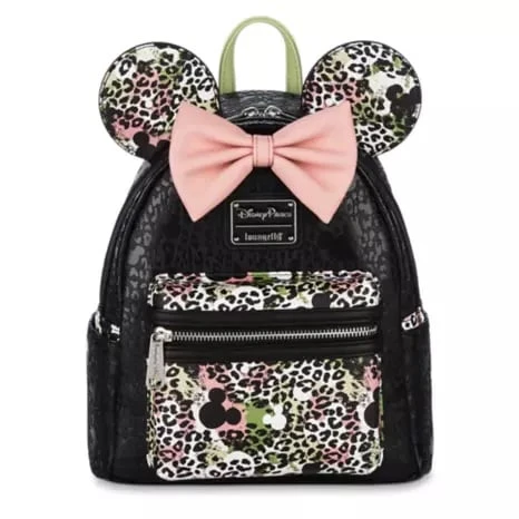 Show off your wild style with this mini backpack from Loungefly. The black simulated leather design features a textured animal print incorporating Mickey icons, while the 3D ears and front zip pocket have a colorful animal print with Mickey icons. Topped with a pink bow, its dramatic look is perfect for those who don’t run with the pack.