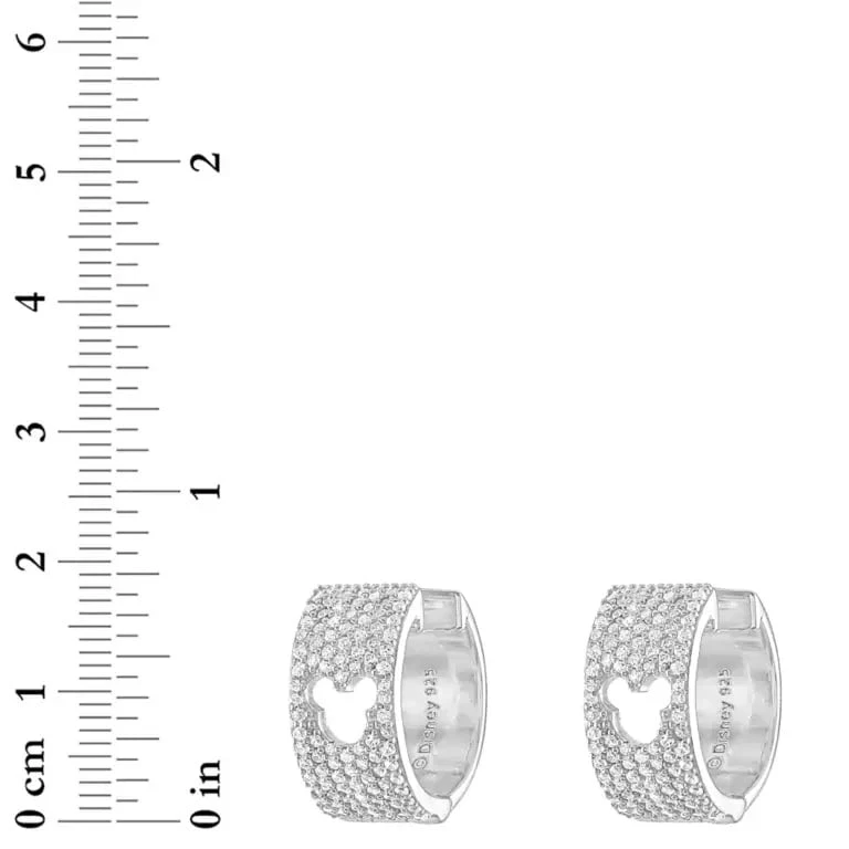 Pavé set cubic zirconia cover the front half of these elegant earrings by Rebecca Hook. Created in sterling silver, they feature a Mickey icon cut out and post backs for a pair with dazzling style.