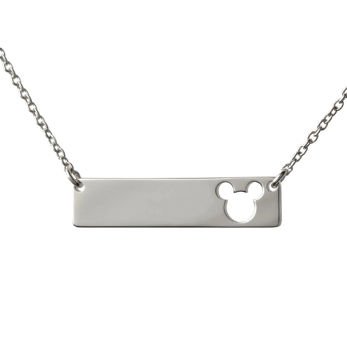 This necklace stars the memorable Mickey Mouse. Fashioned from sterling silver, this elegant bar pendant by designer Rebecca Hook will create a lasting shine at every occasion.