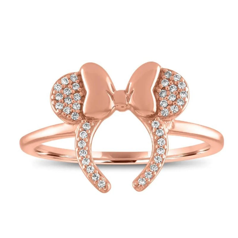 This elegant ring, inspired by Minnie’s familiar ear headband, has been fashioned in a dazzling combination of sterling silver with rose gold plating, and encrusted with cubic zirconia, by designer Rebecca Hook.