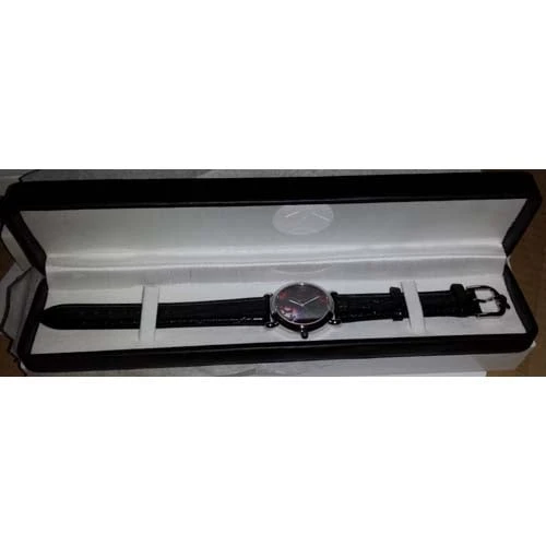 - Black Leather Watch band with Exclusive Mickey Icon Buckle Clasp.